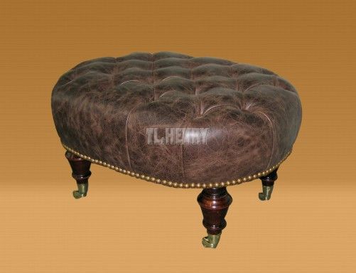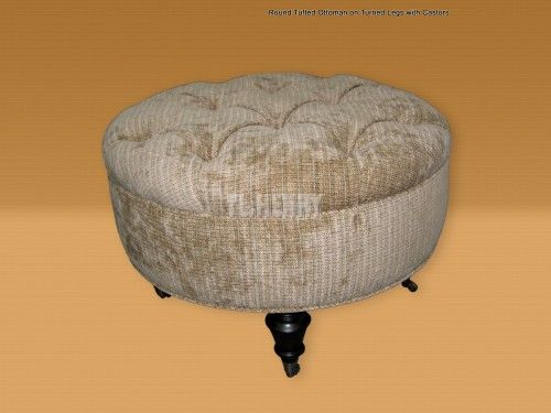 | Round Tufted Ottoman on Turned Legs with Castors-COM |